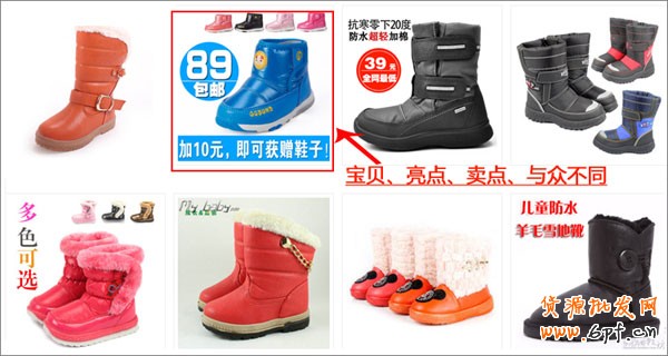 ?。?)主圖設計:主圖是買家對寶貝的第一印象,所以,一定要格外醒目特別,尤其是在搜索頁面,圖片更要清晰、賣點突出,同時考慮下周邊同行產(chǎn)品的主題,盡量跟他們不一樣。這樣的寶貝才能在第一時間吸引買家的目光。如圖:
