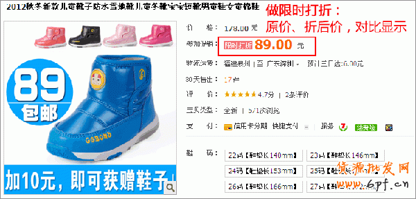 價格設置:原價按實價來設置,在原價的基礎上打折,打折力度要大,且限定優(yōu)惠時間,價格鮮明對比,限時打折,造成緊張感優(yōu)惠感,從而激起買家的購買欲。如圖: