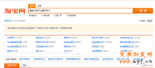 例如買家在淘寶搜索框中搜索“真皮沙發(fā)什么牌子好?”,第一屏的展示結(jié)果如下: