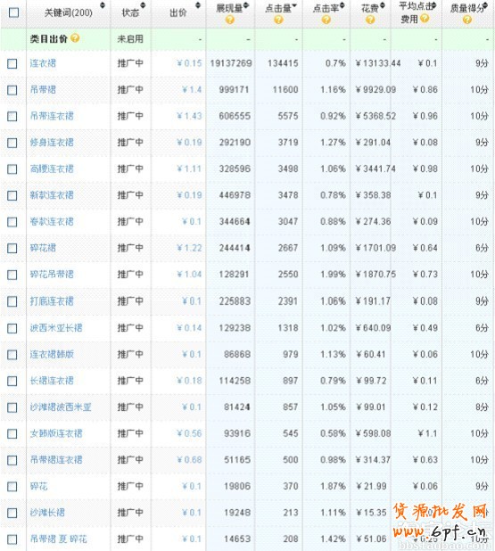 上面的數(shù)據(jù)表明,直通車已經(jīng)開始向最好的軌跡運行。所以 “預(yù)熱”很重要。在淘寶做服裝,特別是夏、冬兩季,我們要提前拿出一段時間進(jìn)行預(yù)熱。以為那個時候競爭力度較小,市場競爭沒有這么激烈,關(guān)鍵詞質(zhì)量得分競爭壓力都比季節(jié)來臨時??;可以讓我們盡早的洞悉市場規(guī)律,利用數(shù)據(jù)反饋分析選款是否得當(dāng);而且我們有充足時間做款式測試,就算選錯款式,也有足夠的時間更換主推寶貝。