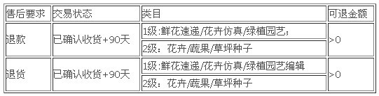 此外,本期產品還增加了特殊類目的逆向入口時間。主要是由于伴隨交易商品種類越來越多,部分商品并非在交易成功后的15天內就能發(fā)現(xiàn)商品好壞,比如:花苗種子這類商品,本期將花苗種子類目的售后入口開放到確認收貨后的90天。