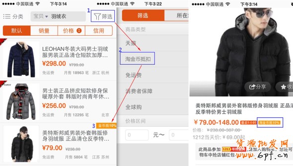 1、無(wú)線:在最新版淘寶客戶端,淘金幣寶貝有特殊標(biāo)志+專項(xiàng)篩選