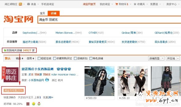 買家打開(kāi)淘寶主頁(yè),在搜索框選擇店鋪選項(xiàng),輸入淘金幣+關(guān)鍵詞,比如“淘金幣 羽絨衣”,點(diǎn)擊搜索,就可以把所有支持使用淘金幣抵錢的賣羽絨衣的店鋪搜索出來(lái)啦,點(diǎn)此體驗(yàn)一下: