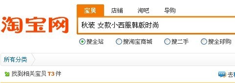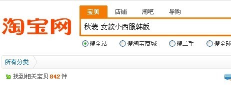 我用淘寶搜索一件秋裝女裝小西服如圖: