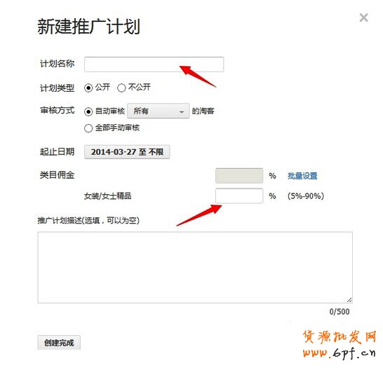 第六步,接著賣家就可以進(jìn)入到淘寶客推廣的頁面,進(jìn)入“推廣管理”,并新建推廣計劃,填寫好推廣計劃里面的信息,如計劃名稱,審核方式等等。具體內(nèi)容顯示如下:
