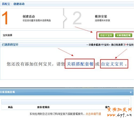 注意:點(diǎn)擊彈窗出現(xiàn)提示如上圖,親必須訂購官方搭配套餐,并且去創(chuàng)建搭配套餐才可以關(guān)聯(lián)搭配寶,所以,第一步訂購官方的搭配套餐很重要。