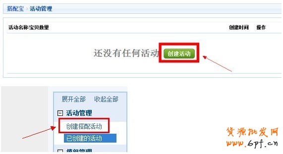 2、點(diǎn)擊馬上【創(chuàng)建活動】按鈕,或左側(cè)【創(chuàng)建搭配活動】,如下圖