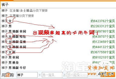 這些詞都是買家搜索該款時搜索頻率最高的詞,如果有和你寶貝相關(guān)的一定要用到寶貝描述中去!同時在搜索“襯衫”時,下拉出來的很多詞也給了我提醒,比如這款的“女”、“短袖”“雪紡”“修身”幾個詞。因為我們在閉門造車的給出寶貝描述時,往往容易從主觀意識出發(fā),就是我對這款衣服的感覺來描述,使用了一些對搜索查找價值不大的形容詞,如我之前的“氣質(zhì)淑女白襯衫”,其實除了“襯衫”這個詞之外,“氣質(zhì)”、“淑女”、“白”都是搜索意義不太大的詞。而這款衣服的非常有價值的搜索定位詞“女”、“短袖”、“雪紡”、“寬松”,我卻忽略了去應(yīng)用。因為你在描述你的寶貝時,它是你心中唯一考慮的商品,你對它的屬性特征很清晰,不說女式的你也知道是女式的,不說雪紡的你也知道是雪紡的,顯而易見的反而是最容易被忽略的。而一個消費者在淘寶上買衣服時,面對的卻是千千萬萬的商品,消費者要從何而知你的商品就是符合她心中所想?所以她在搜索時必然會加上這些定位語來準(zhǔn)確定位自己所需。我們做寶貝描述時就是要抓住大部分消費者的這些定位詞。當(dāng)然,消費者千千萬萬,每個消費者的定位詞都會有所不同,但總有規(guī)律可尋。從淘寶搜索系統(tǒng)自動統(tǒng)計出來的出現(xiàn)概率最高的詞來看,消費者傾向于選擇通用型的形容詞來定位尋找產(chǎn)品,如男、女、短袖、長袖、寬松、緊身。。。。。。單純是“女”字,大家從常用類目中就可以看出消費者在搜索引擎中使用頻率有多高