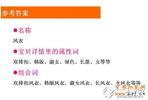第三點(diǎn),名稱詞和屬性詞里面的組合詞。這些詞相對(duì)比較精確,買家的購(gòu)買欲望也十分強(qiáng)。