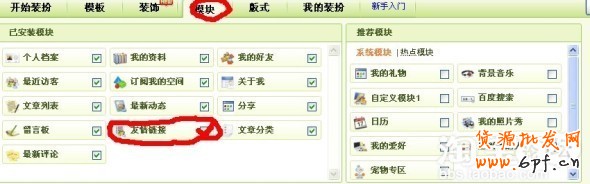 第三步:在推薦模塊那里找到友情鏈接,在后面打個勾。直接點(diǎn)保存,這時友情鏈接這個小模塊就會出現(xiàn)在你的主頁上的左上角,你可以把它放到你主頁上的任何地方。