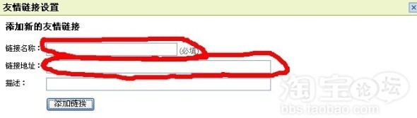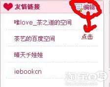 第四步:設(shè)置友情鏈接點(diǎn)編輯。會彈出一個對話框形式文本。鏈接名稱就寫你網(wǎng)店的店名例:茶話會,地址就寫你網(wǎng)店的網(wǎng)址然后點(diǎn)添加鏈接。