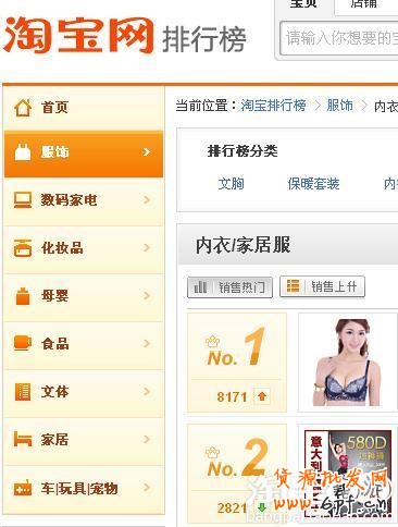 還有一個關(guān)鍵詞來源就是上淘寶搜索排行榜,到自己主營產(chǎn)品類目下查找近期熱賣商品,看看人家是怎樣設(shè)置關(guān)鍵詞的。http://top.taobao.com/?from=search_result