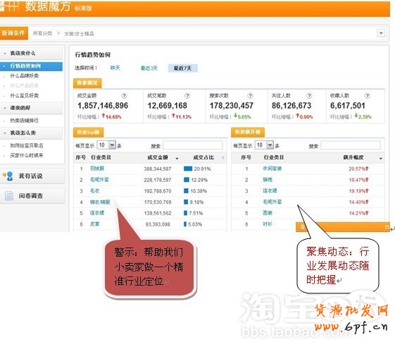 行業(yè)趨勢:可以讓我們迅速了解到我們應(yīng)該賣哪些東西,看了下面圖片,相信大家會一清二楚了::(此圖來源于本人所購買的標(biāo)準(zhǔn)版數(shù)據(jù)魔方)