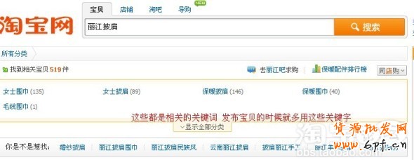 剛開始的時候我是隨便定義寶貝名稱的,每天通過搜索進(jìn)入店鋪的顧客少之又少,后來在論壇上看到了一下關(guān)于關(guān)鍵詞的帖子,于是也抱著嘗試的心情改了一下,效果還真是很明顯,很快就有通過寶貝搜索進(jìn)入咱鋪?zhàn)永铮艺J(rèn)為選擇關(guān)鍵詞一是要換位思考,比如我們賣的是麗江披肩,我會去淘寶麗江披肩,下面會出來一系列的關(guān)鍵字,我都會一一搜集下,發(fā)布寶貝的時候就多用這些關(guān)鍵字。
