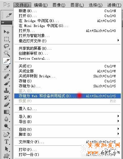 然后點擊菜單上的文件開始選擇“存儲為web和設(shè)備所用格式”