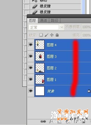 以此類推把所有要參加活動的寶貝全部用魔棒工具選中,按住鍵盤上的CTRL鍵直接拖到你之前所設(shè)置的背景板上。注意有些地方可能在選取的時候摳的不是很好,此時按住CTRL鍵同時按+號把圖象放大,然后按住空格鍵使鼠標(biāo)變成手形時,拉動圖像找到你所要進(jìn)一步修飾的圖像區(qū)域,用橡皮檫或仿制圖章等工具進(jìn)行簡單的修復(fù)。如下圖
