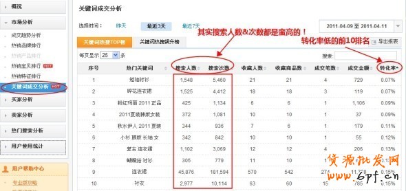 我們?nèi)?shù)據(jù)魔方里面可以輕松搜出來最近三天排名前10位的關(guān)鍵詞,但是他們的轉(zhuǎn)化率呢,有他們的排名靠前嗎?
