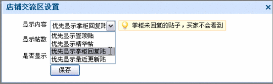 第二步、出現(xiàn)淘寶店鋪交流區(qū)設(shè)置,里面有三項(xiàng):
