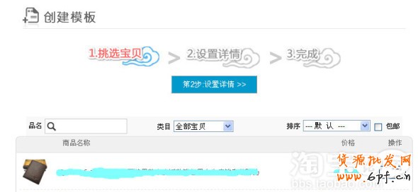 點擊創(chuàng)建模板(上圖第一欄),進入挑選寶貝環(huán)節(jié)(請看下圖)。在你最想展示的寶貝后面點“挑選”按鈕。最多可以挑選8個,不過對于新手賣家來說足夠了。挑選完成后點擊進入進入第2步。