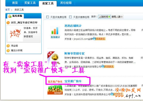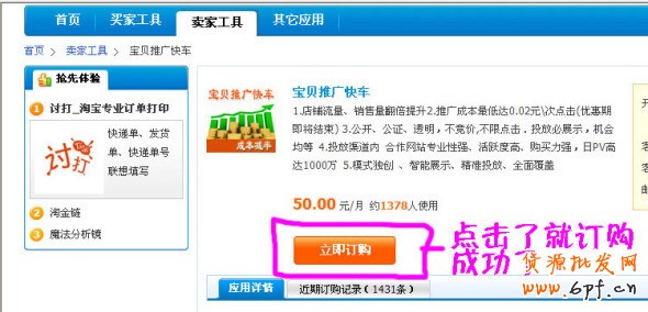 操作:我的淘寶—我是賣家—軟件產(chǎn)品/服務(wù)——我要訂購—購買軟件服務(wù)—淘寶箱—寶貝推廣快車—立即訂購
