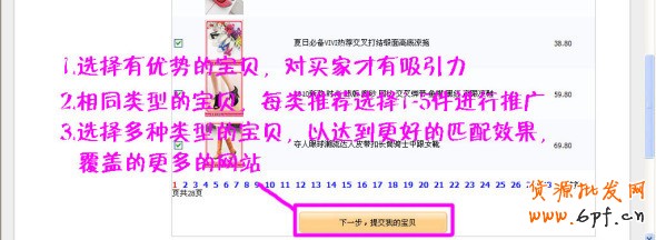 暫時只能推廣20個寶貝,在選擇時注意三點:①一定要選擇優(yōu)勢的寶貝,對買家才有吸引力;②相同類型的寶貝,每類推薦選擇1-5件進行推廣;③選擇多種類型的寶貝,以達到更好的匹配效果,覆蓋的更多的網(wǎng)站。