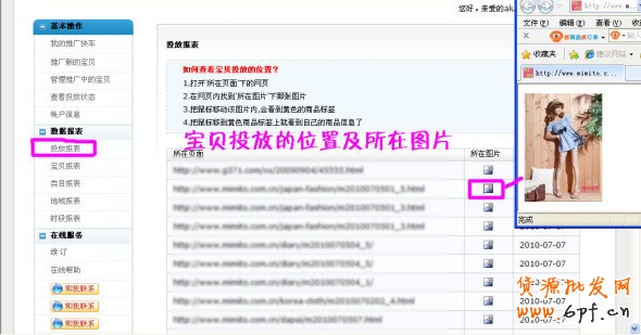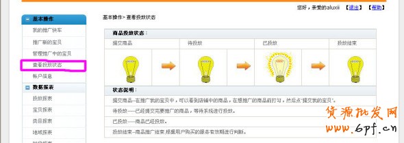 進入此菜單就可以查看自己推廣的寶貝了,在這里可以編輯寶貝的標(biāo)題、價格及寶貝所在店鋪里的鏈接地址;“圖表”里面可以查看此產(chǎn)品訪問的信息,如果覺得此產(chǎn)品不滿意,可以刪除,重新選擇一個寶貝推廣。特別說明一下,已推廣了的寶貝是不能刪除的!