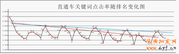 上 圖是直通車關(guān)鍵詞點(diǎn)擊率隨排名變化圖。除自然搜索第一頁(yè)外,從第二頁(yè)開始,關(guān)鍵詞點(diǎn)擊率較高的位置分別是改頁(yè)的第2,3位及9-13位。所以掌柜完全可以 根據(jù)店鋪實(shí)際情況,安排適當(dāng)?shù)某鰞r(jià),搶占更有利的關(guān)鍵詞排名。首頁(yè)第一第二位置經(jīng)常被對(duì)手所點(diǎn),所以3,4,9,10,11位為合適位置,價(jià)格相對(duì)低而且 流量有保證