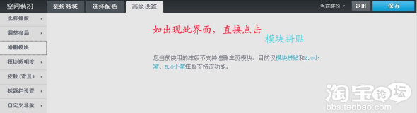 點(diǎn)擊增刪模塊,如果出現(xiàn)下面的界面,直接點(diǎn)擊【模塊拼貼】即可