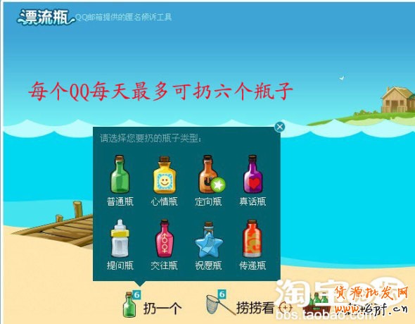 這里,我不是在給騰訊QQ做廣告,這是我們要利用它來為我們做廣告!應(yīng)該有很多人常常會(huì)收到來自四面八方的飄流瓶,瓶?jī)?nèi)會(huì)寫著不同內(nèi)容的字條,現(xiàn)在我們就可以利用這樣的飄流瓶,為我們的店鋪?zhàn)鲎鰪V告!