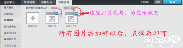 當(dāng)我們圖片都添加好以后,所添加的每個(gè)標(biāo)題模塊上有藍(lán)色小勾的,就表示圖片在空間里顯示了!最后點(diǎn)保存,就算完成了!