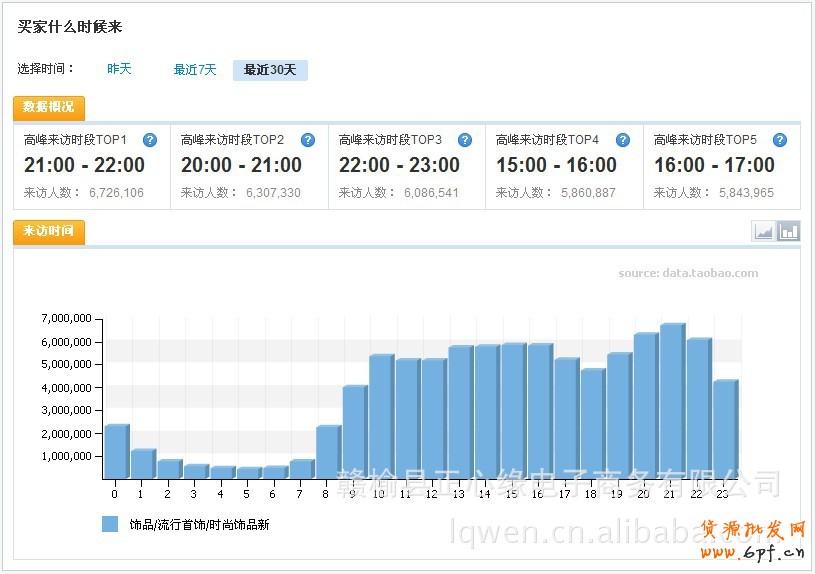 第二張圖是最近30天每日各時(shí)段平均流量信息圖,一般上午9點(diǎn)到晚上23點(diǎn)流量越多,大家可以看一下高峰來(lái)訪時(shí)段TOP5,這樣自己心里就有數(shù)了!