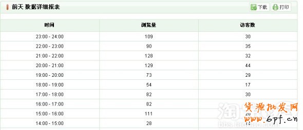 首先,按小時流量分析部分,提供了數(shù)據(jù)的詳細報表。詳細報表提供了每一個時段的具體瀏覽量和訪客數(shù)。