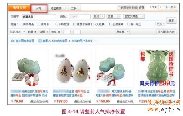2012年7月26日,淘寶搜索“人氣排序”位置進行了以下調整,如圖4-14、圖4-15所示。