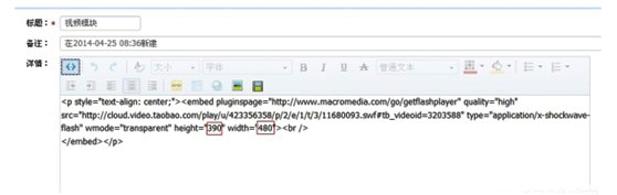 第四步,至于調(diào)整視頻的大小,就先點(diǎn)擊代碼編輯器,然后就對(duì)代碼內(nèi)容里面的數(shù)字進(jìn)行調(diào)整(下圖用紅框標(biāo)示的地方),調(diào)整到合適的大小后,就可以點(diǎn)擊保存,那么淘寶詳情頁(yè)視頻居中和大小設(shè)置,就完成了。