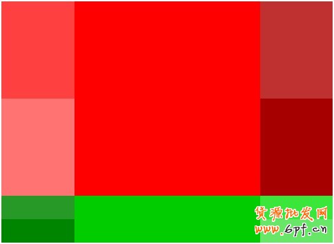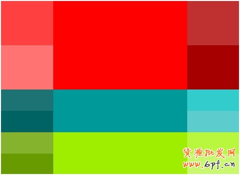 這是紅色和綠色的色調(diào)經(jīng)過不同純度、明度調(diào)試后所得配色方案。這個對比度很強,運用時不宜同時大范圍使用。