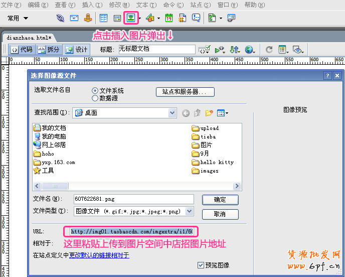 DW是所見即所得網(wǎng)頁編輯軟件,現(xiàn)在大部分賣家朋友使用的都是這個(gè),很方便!首先將剛才制作好的圖片上傳到您的圖片空間,復(fù)制這個(gè)圖片的鏈接地址! 打開DW軟件,新建一個(gè)HTML文檔,插入圖片