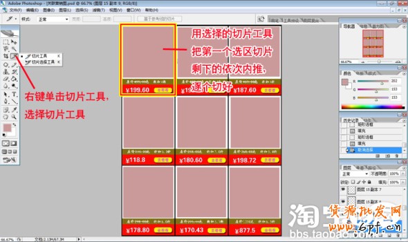 二、750的關(guān)聯(lián)圖做好后,這時我們就用PS的切片工具把每個寶貝寶貴下面的文字切成片,我的就是切成的九塊。