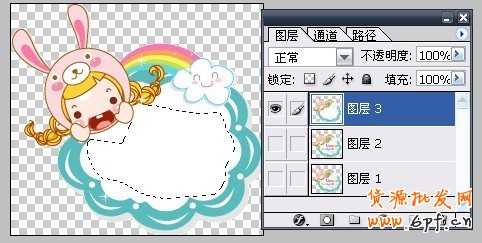 接下來選動畫面板的第三幀,圖層面板選在第三層上