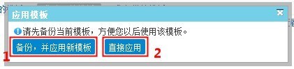 第2步:點擊“應(yīng)用”,會跳出“備份,并應(yīng)用新模板”和“直接應(yīng)用”選擇對話框,如下: