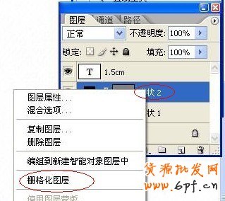 鼠標(biāo)放在【形狀2】圖層后,右擊鼠標(biāo)彈出對話框后,選擇【柵格化圖層】,如下圖: