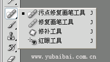 提示:photoshop修補工具默認(rèn)在photoshop工具欄看不到,按下圖可以找到