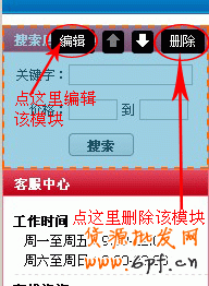 這樣就可對(duì)相應(yīng)的模塊進(jìn)行編輯或刪除操作了。首頁(yè)右邊的模塊操作相類(lèi)似,在這里就不多說(shuō)了。