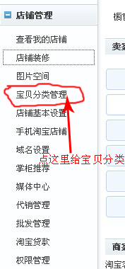接下來(lái)我重點(diǎn)要說(shuō)的是左側(cè)的導(dǎo)航欄了,清晰的分類(lèi)可以讓買(mǎi)家更快地找到她們想要的寶貝,所以先要合理分類(lèi),不然買(mǎi)家到了店鋪里也找不到她們要的東東哦!在“我是賣(mài)家”頁(yè)面左側(cè)導(dǎo)航欄中找到“寶貝分類(lèi)管理”,如圖: