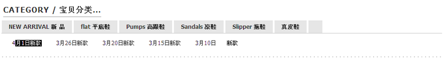 通欄展示寶貝的時(shí)候別忘記在寶貝上方添加一個(gè)通欄的寶貝分類條,別小看這個(gè)寶貝分類條哦,看看下面的點(diǎn)擊數(shù)據(jù)您就知道效果如何了?