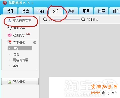 步驟二:為該圖添加您想要的文字說明 和文字導航,點擊美圖秀秀上面的文字按鈕,點擊左側的輸入靜態(tài)文字