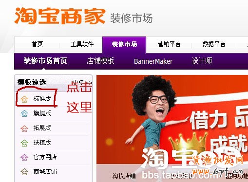 4、店鋪裝修市場頁面如下圖,接下來要看自己的店鋪是哪個版本的就點擊哪個版本,我的店鋪是旺鋪標準版所以點”標準版”,(無論是哪個版本的店鋪以下的操作方法都是一樣的)