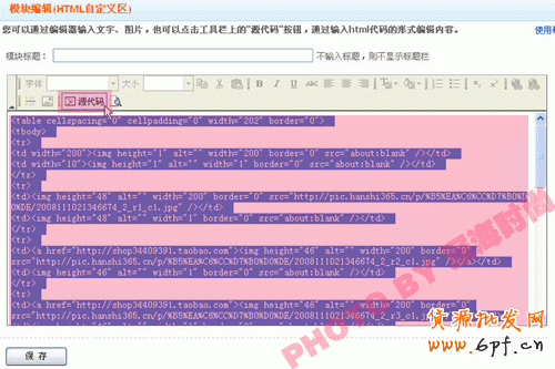 7.進(jìn)入旺鋪后臺(tái),在左側(cè)添加自定義模塊【圖11】,到左側(cè)最下面找到新添加的模塊,點(diǎn)擊齒輪圖標(biāo)進(jìn)行編輯,切換到源碼模式,黏貼上一步中復(fù)制好的代碼【圖12】。取消源碼模式,你就會(huì)看到效果了,最后保存。