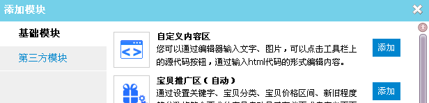 淘寶扶植版裝修-自定義模塊添加促銷模板