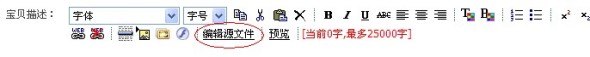 2.在發(fā)布寶貝頁(yè)面的編輯器中,點(diǎn)擊“編輯源文件”