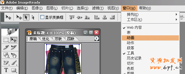 5、將【動畫】窗口顯示出來,如果你的ImageReady中已經有【動畫】窗口本步驟可以跳過,如下圖: